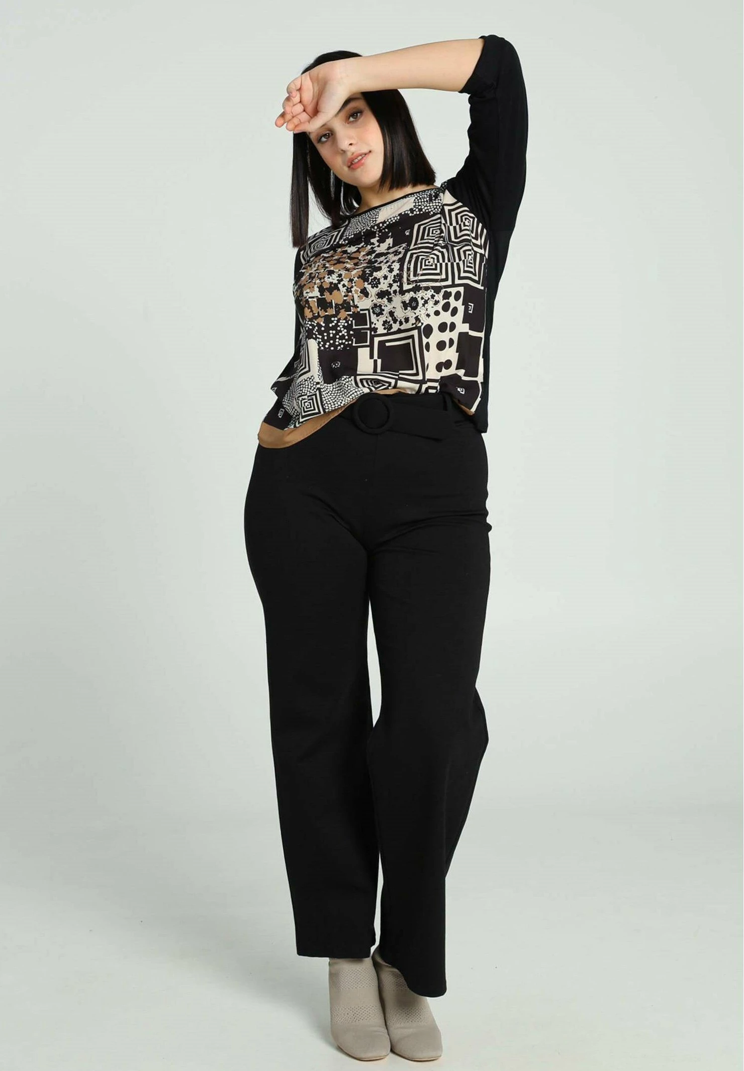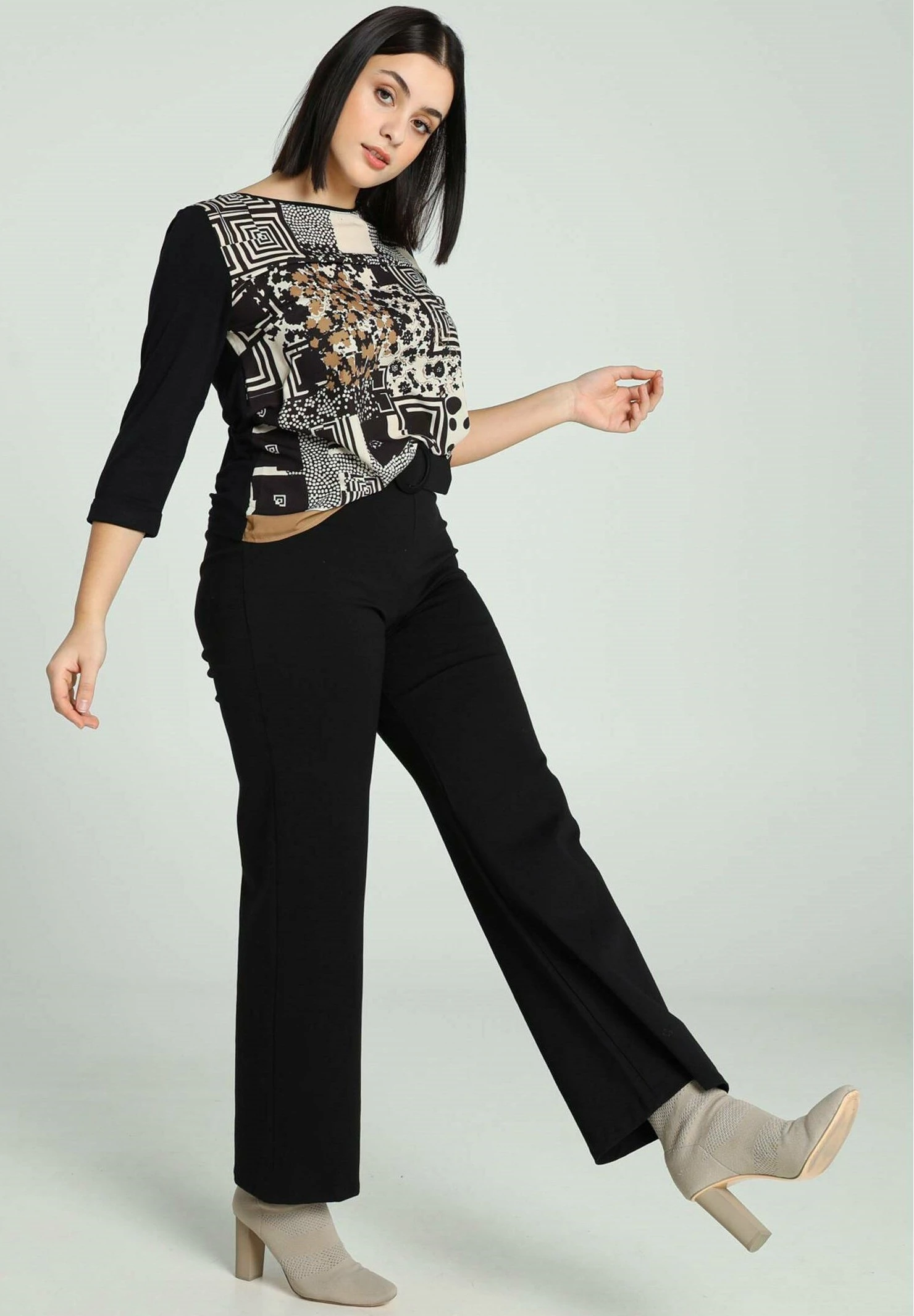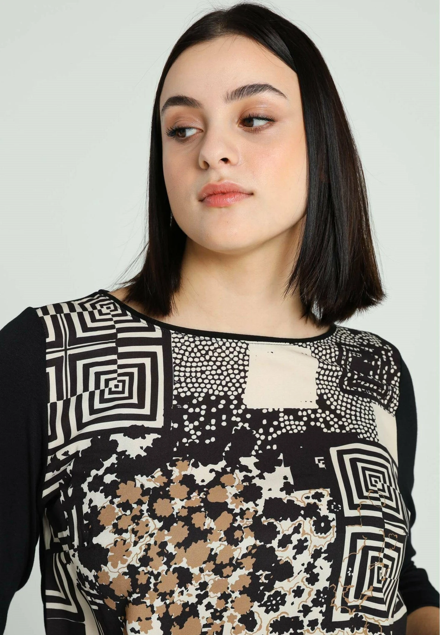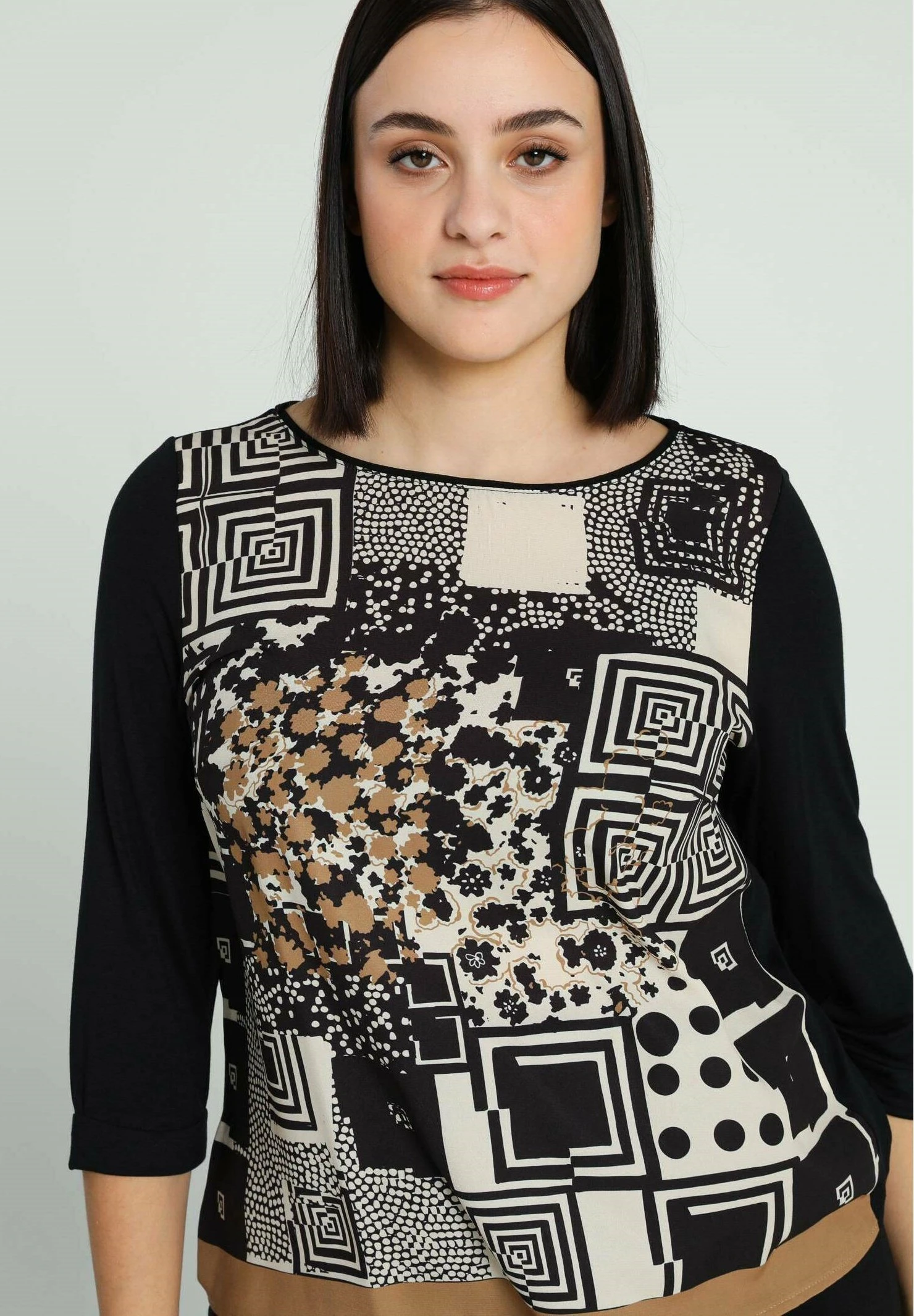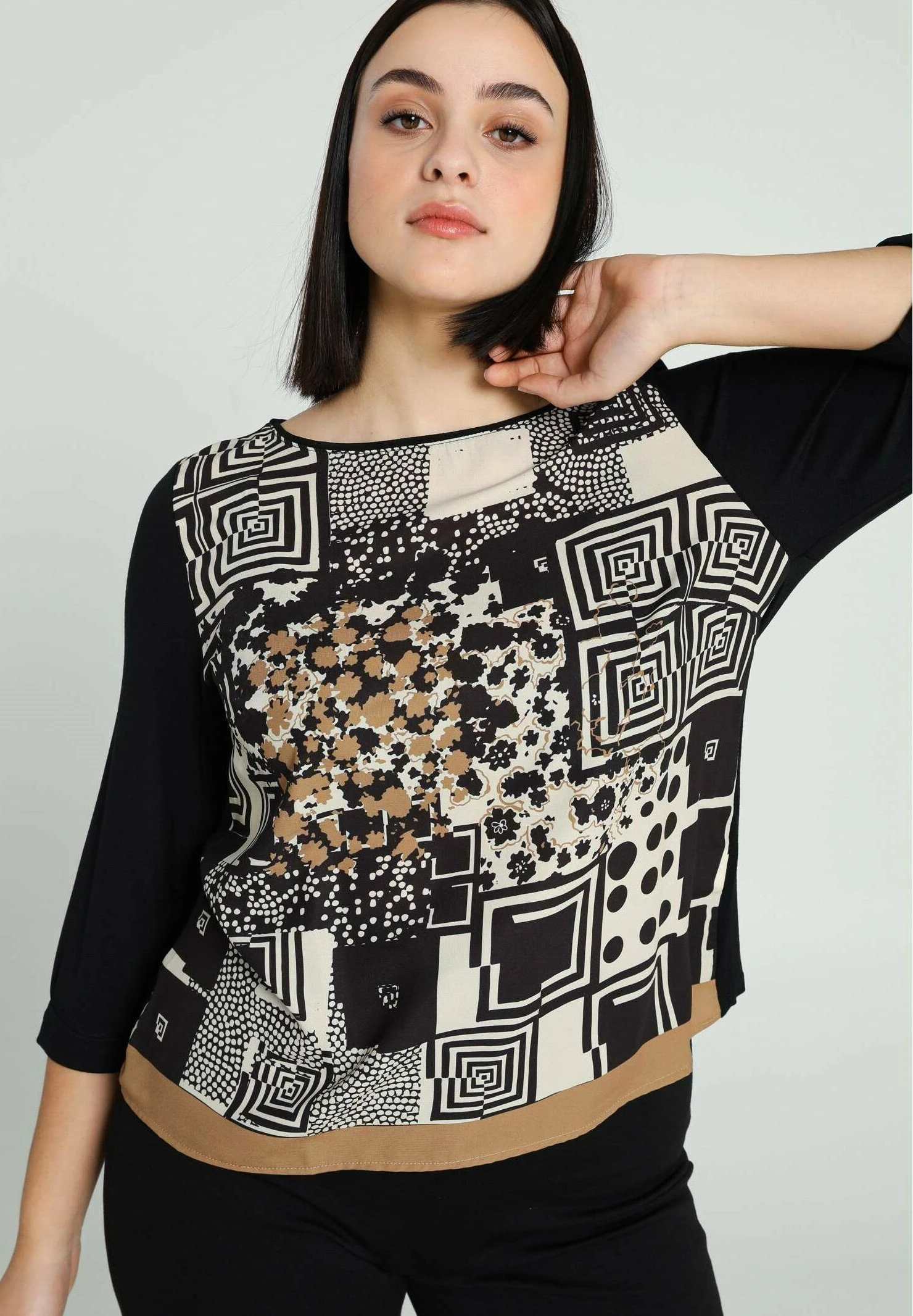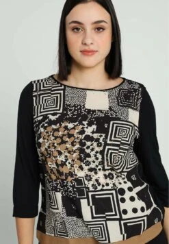 À COL ROND ET MOTIFS ABSTRAITS – Bluzka – Black Ecru