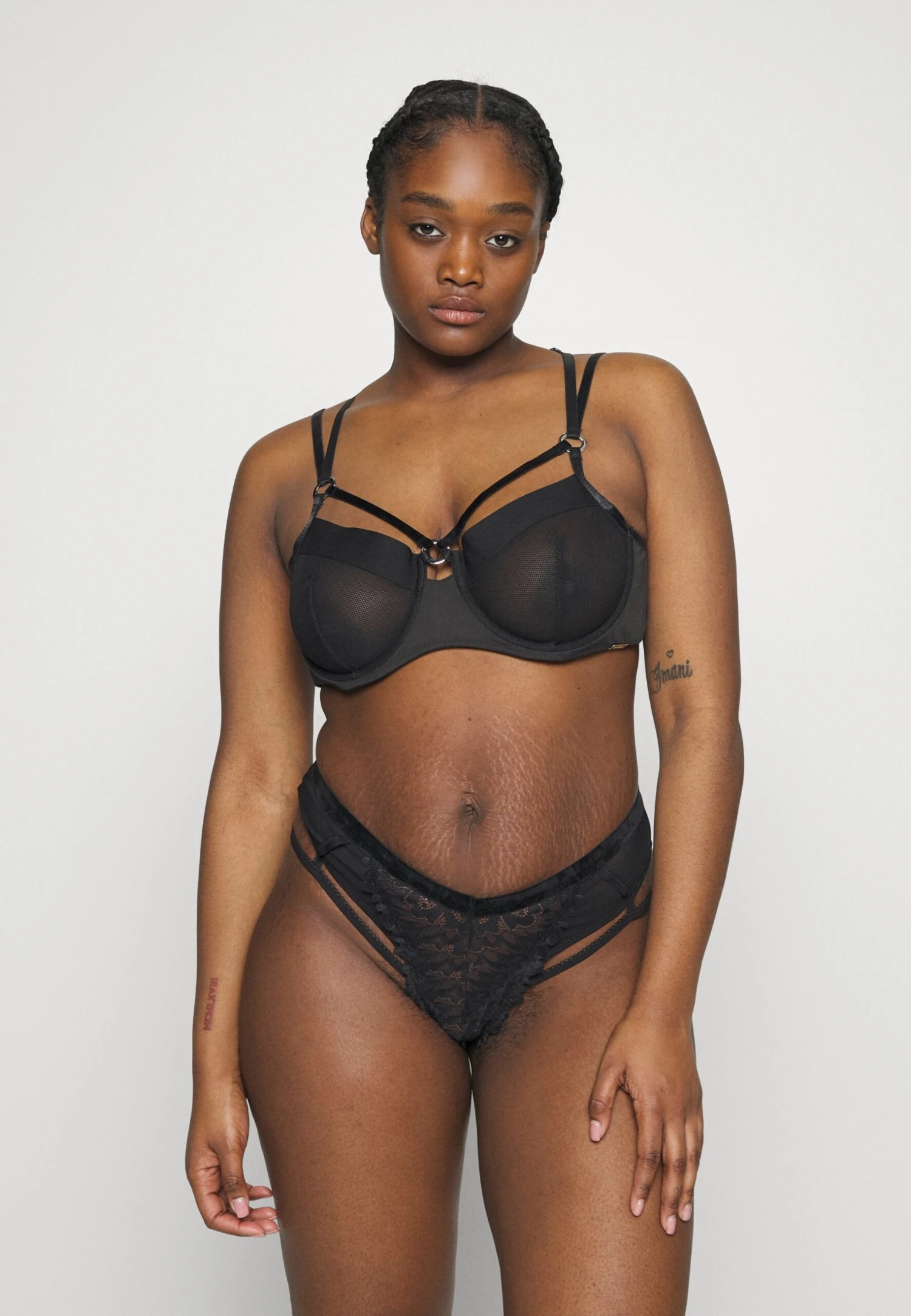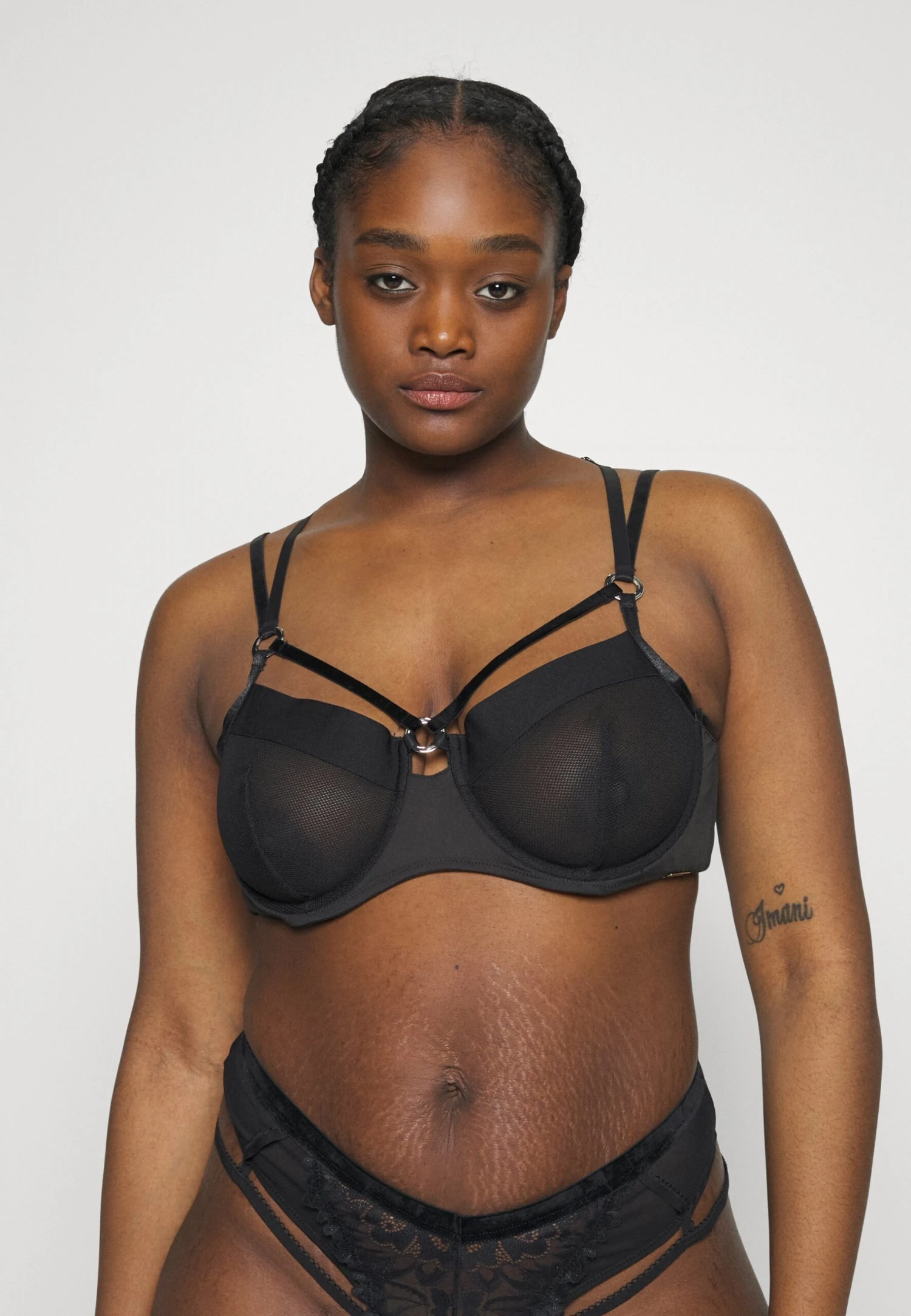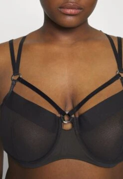 SAPPHIRE HARNESS STRAPPY FISHNET UNDERWIRE BRA – Biustonosz Z Fiszbiną – Black