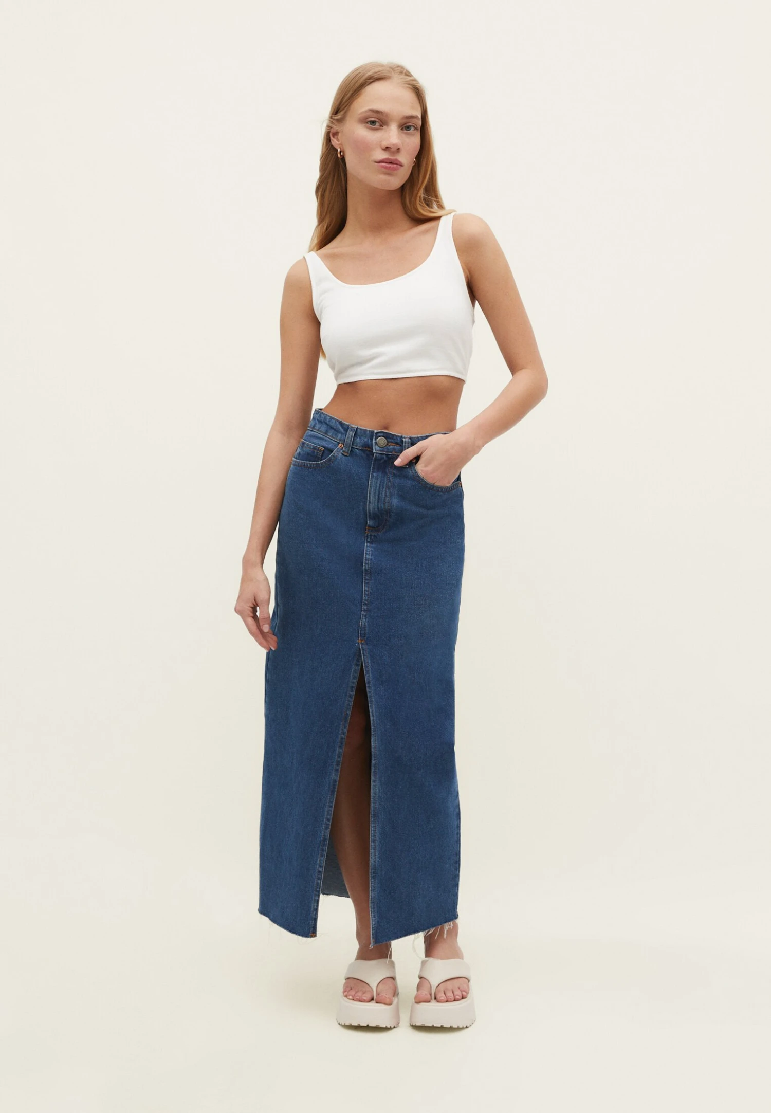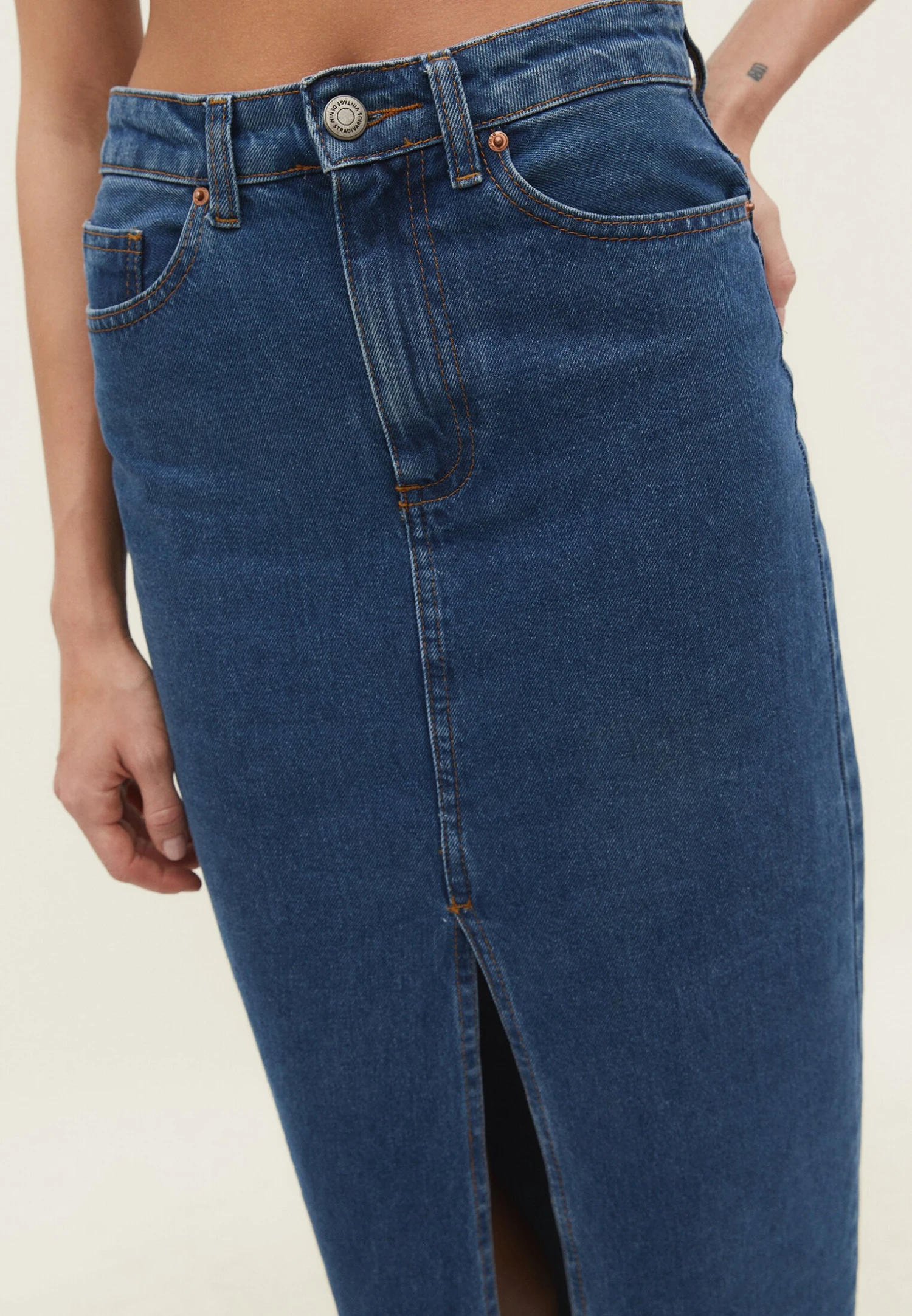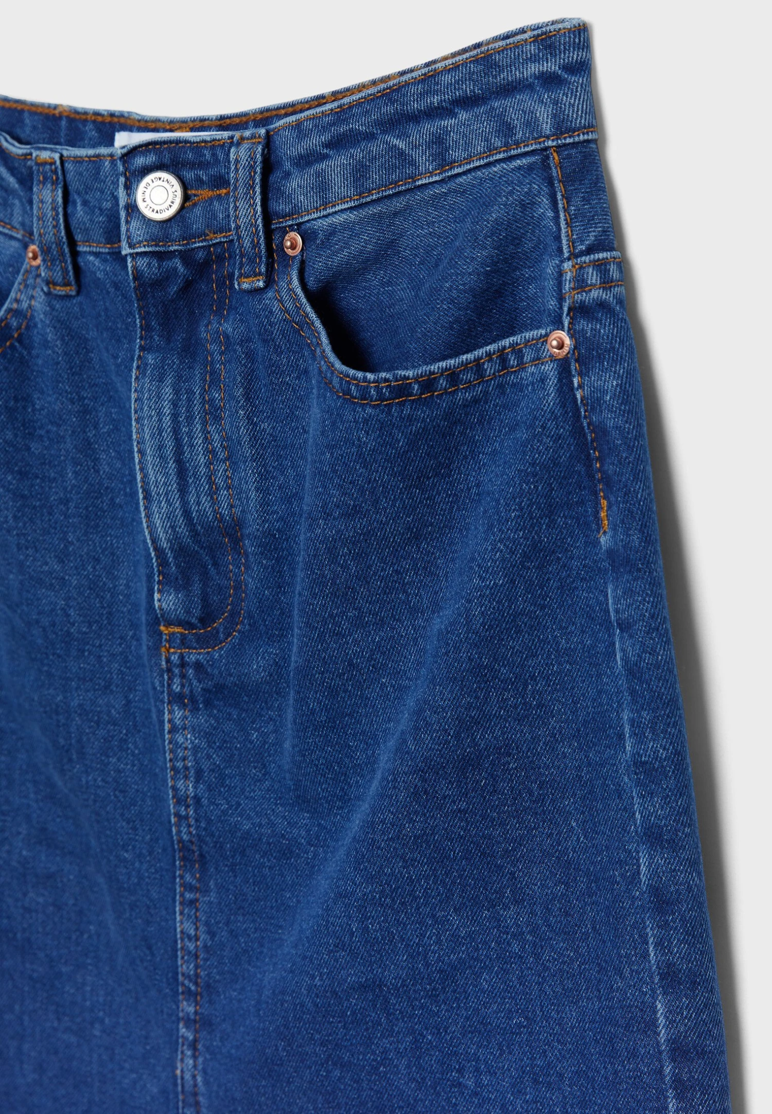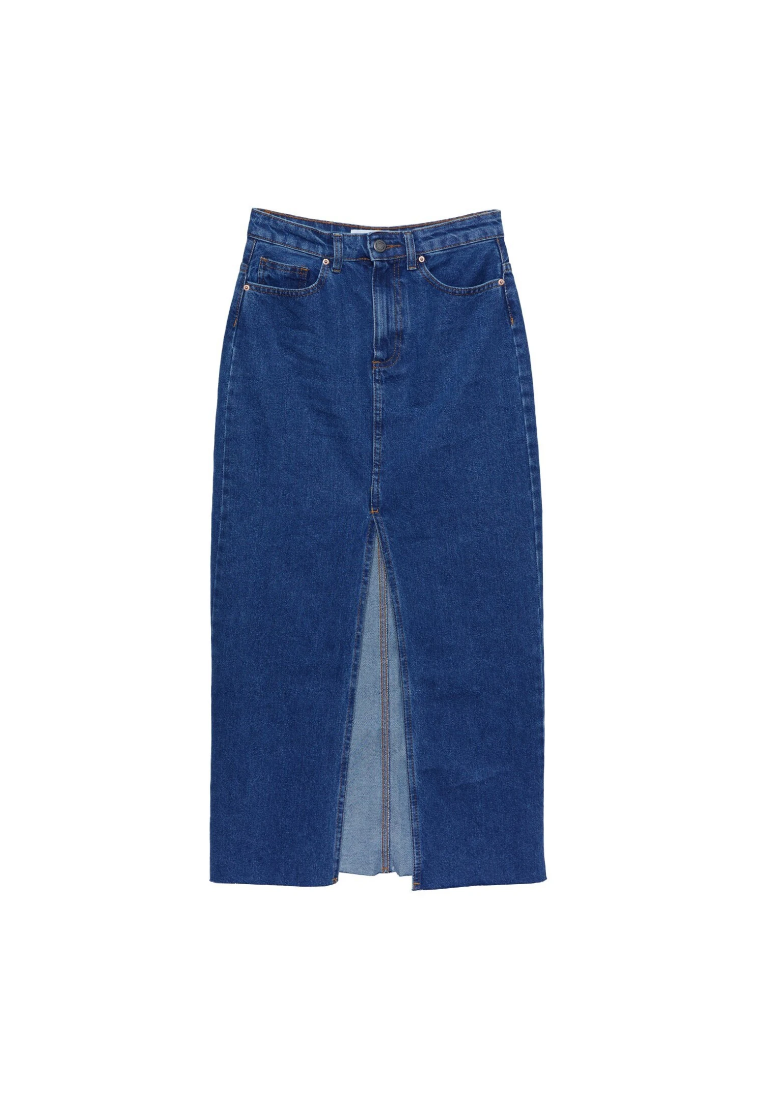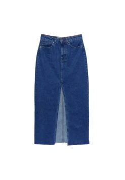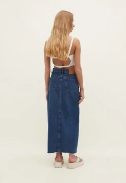 Stradivarius LANGER – Długa Spódnica – Dark Blue Denim