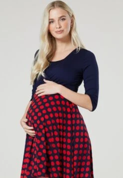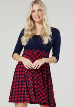 Sukienka Letnia – Granatowa W Czerwone Grochy